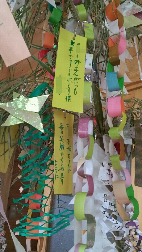 入居者様の書かれた短冊にはご家族への思いが書かれていました。